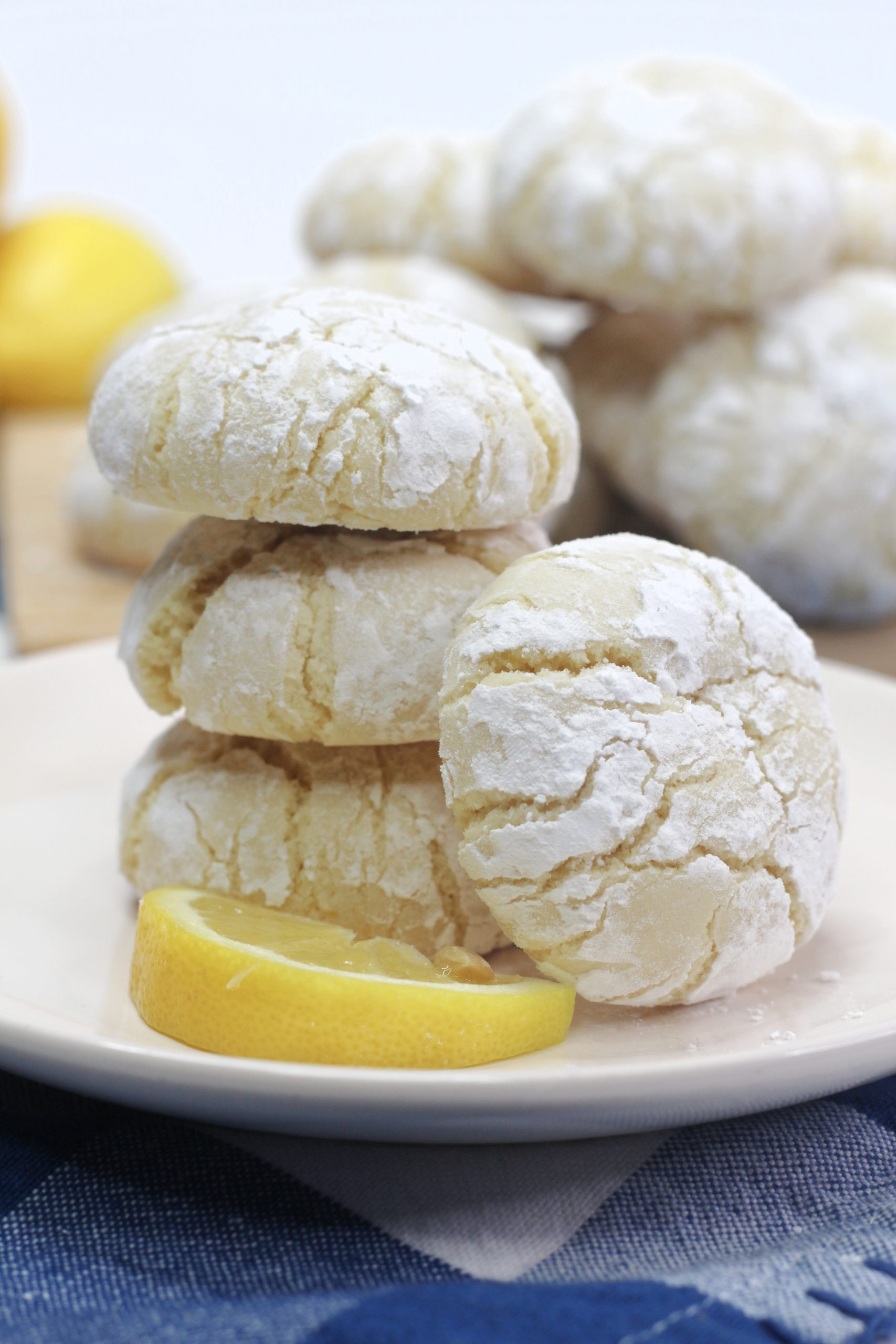 These Lemon Cream Cheese Crinkle Cookies are easy to make and ready in no time at all, which is great for when a cookie craving hits. We usually eat these in a day or two, but to keep them fresh, make sure to store them in an air tight container. I like to keep this perfect spring dessert in the fridge so they stay firm and delicious.