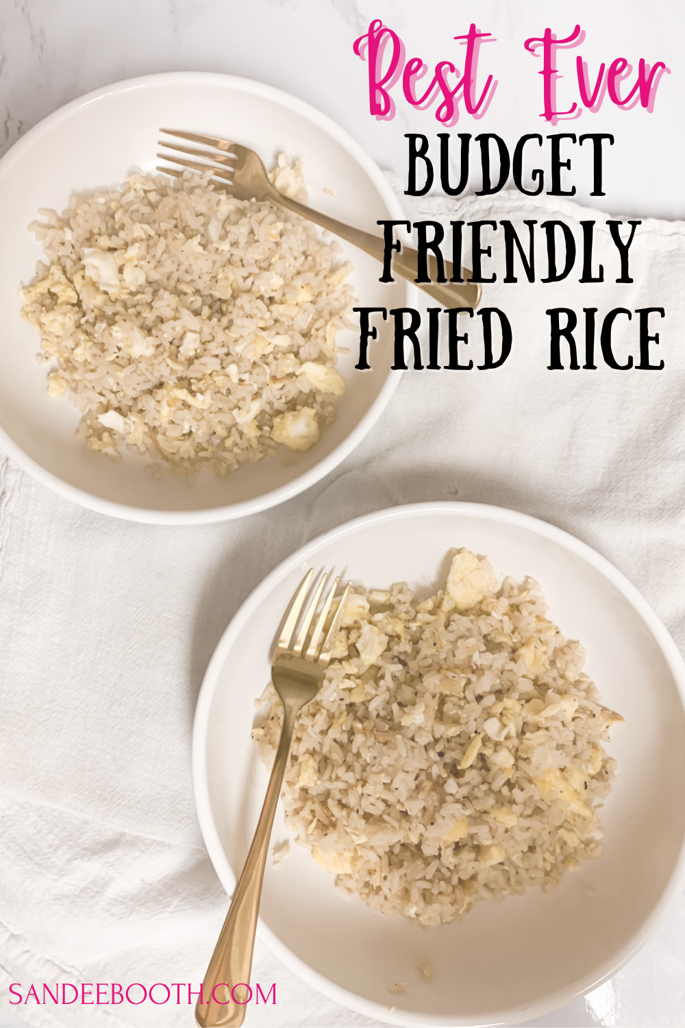 It’s so easy to make this budget friendly favorite! You just need a few cups of cooked rice, eggs, and some simple spices. It’s much faster to make this fried rice recipe if you have left over cooked rice. If you plan on making this, you can cook up a few extra cups of rice in advance & either keep it in your fridge or freezer.