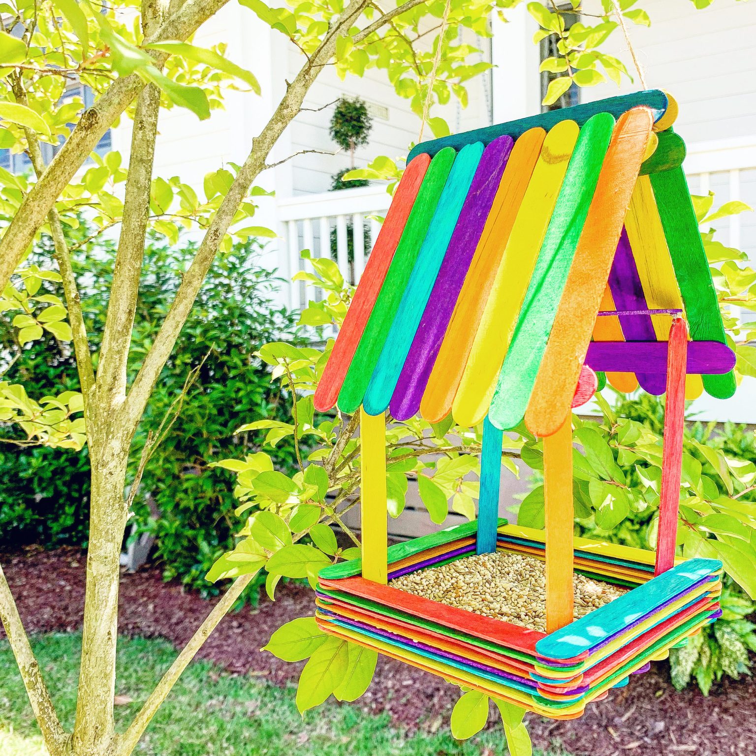 19. Rainbow Popsicle Stick Bird Feeder Popsicle-Stick-Birdhouse-Craft-scaled fun spring activities for kids