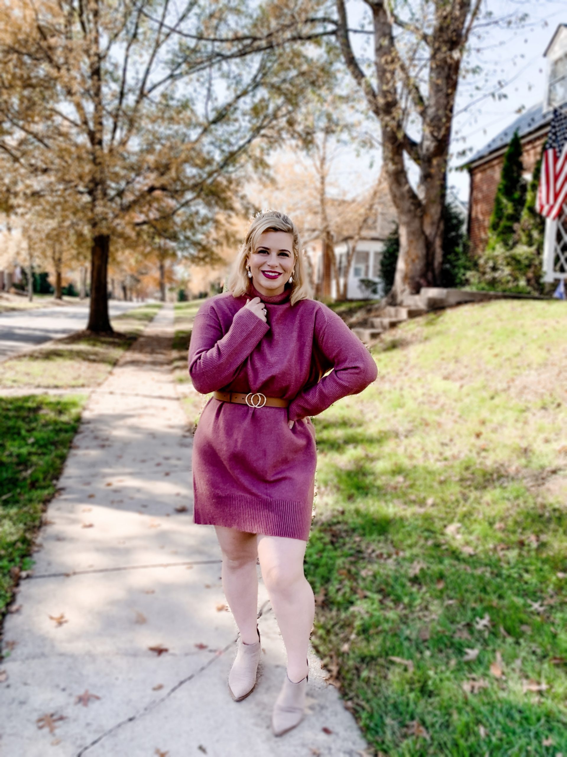 Everything but the belt came from Target, but there are so many adorable sweater dresses available at pretty much every retailer this fall. Find the one that works for your body and have fun styling it! You can shop all of these pieces here.